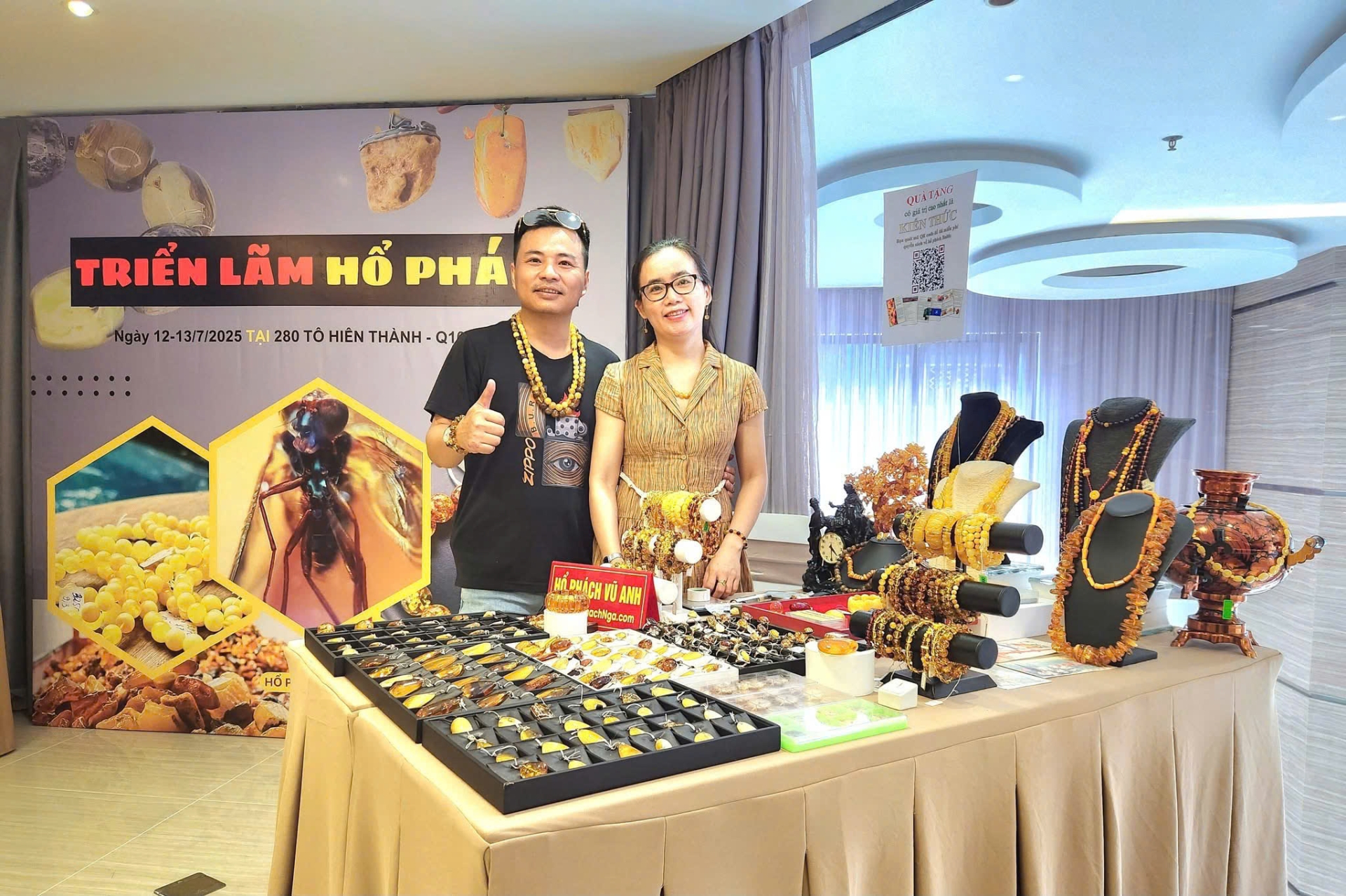 Cặp đôi vợ chồng tiến sĩ đã mang những sản phẩm độc đáo của mình tham dự triển lãm Hổ Phách tại tp Hồ Chí Minh, Hà Nội để giao lưu cũng như giới thiệu cho khách hàng và người đam mê Hổ phách rõ hơn về giá trị của nó.