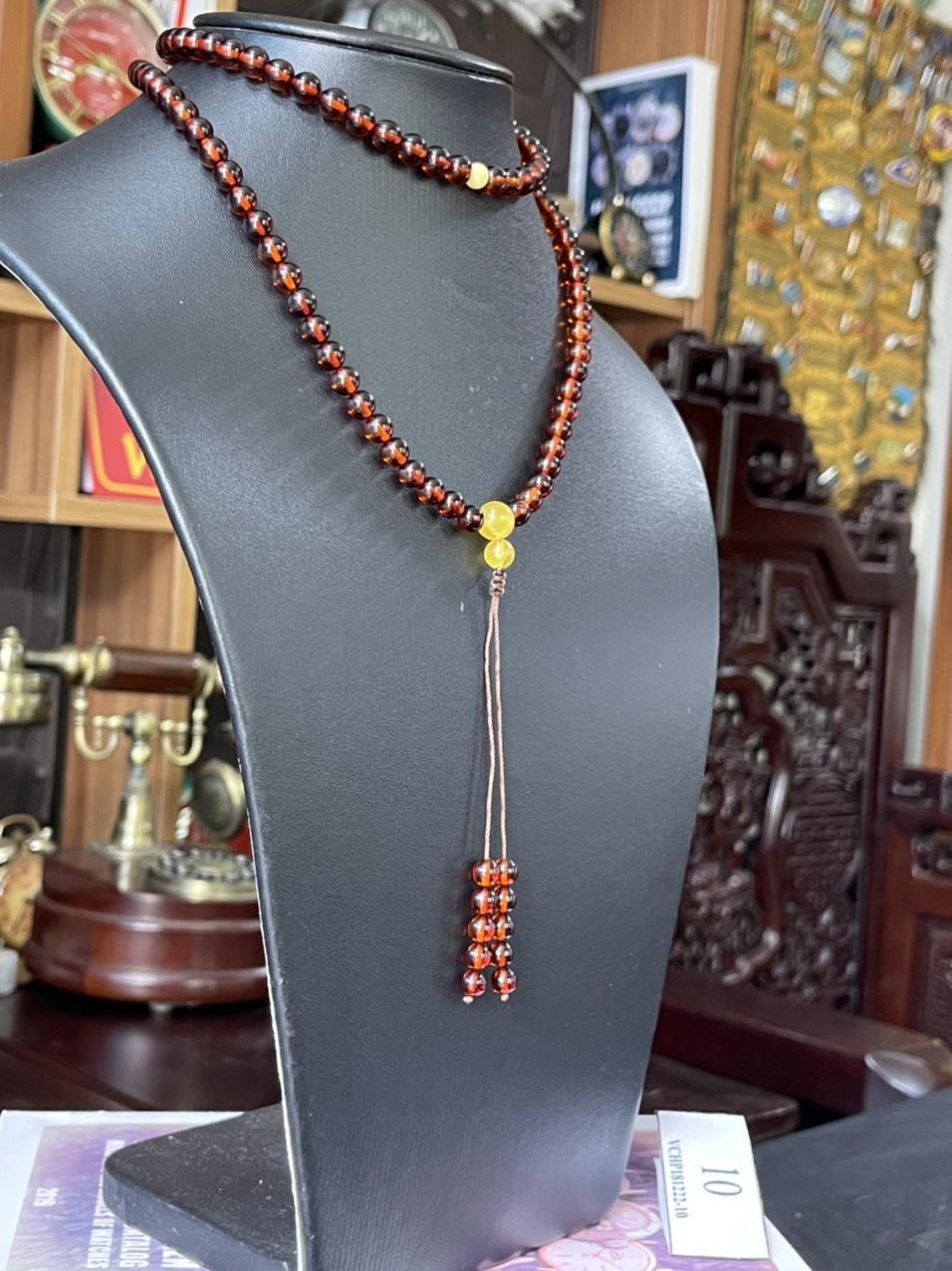 - Chuỗi 108 hạt Hổ Phách là biểu thị cho cầu chứng 108 pháp Tam Muội mà đoạn trừ 108 phiền não.